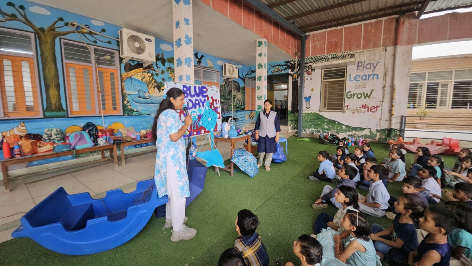 Celebrating colours like blue helps young learners develop sensory skills, colour recognition, and emotional associations. Blue Day was not just a visual delight but also a meaningful learning experience for our Pre-Primary students.